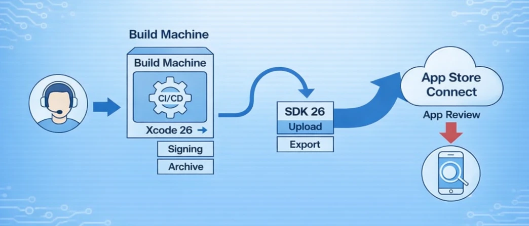 Here, it becomes important to note that tools like Fastlane often remain fine because they orchestrate Apple tooling (e.g., xcodebuild). The key is that they must run on Xcode 26 and export using the current SDK baseline.