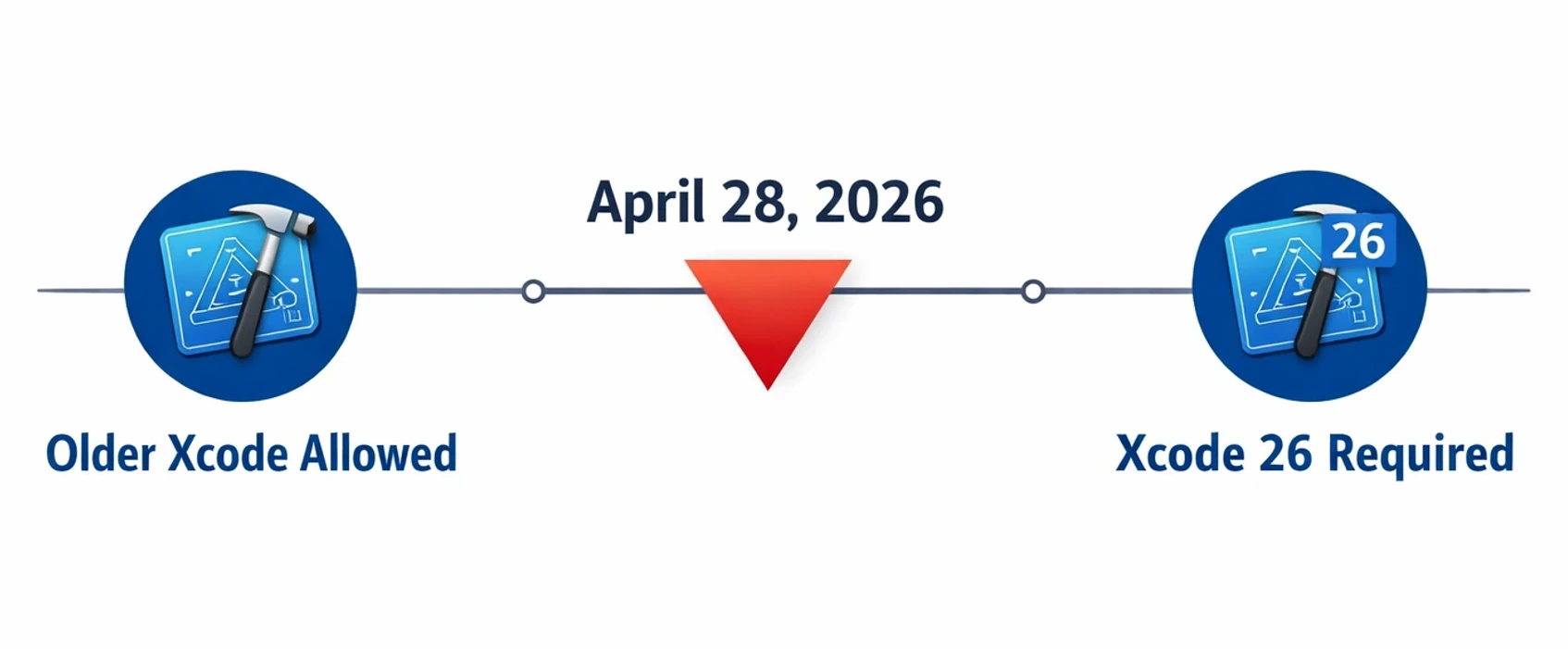Apple has explicitly set Xcode 26 as the minimum for uploads starting April 28, 2026. If your CI is pinned to older Xcode images, you’ll hit an immediate submission blocker.