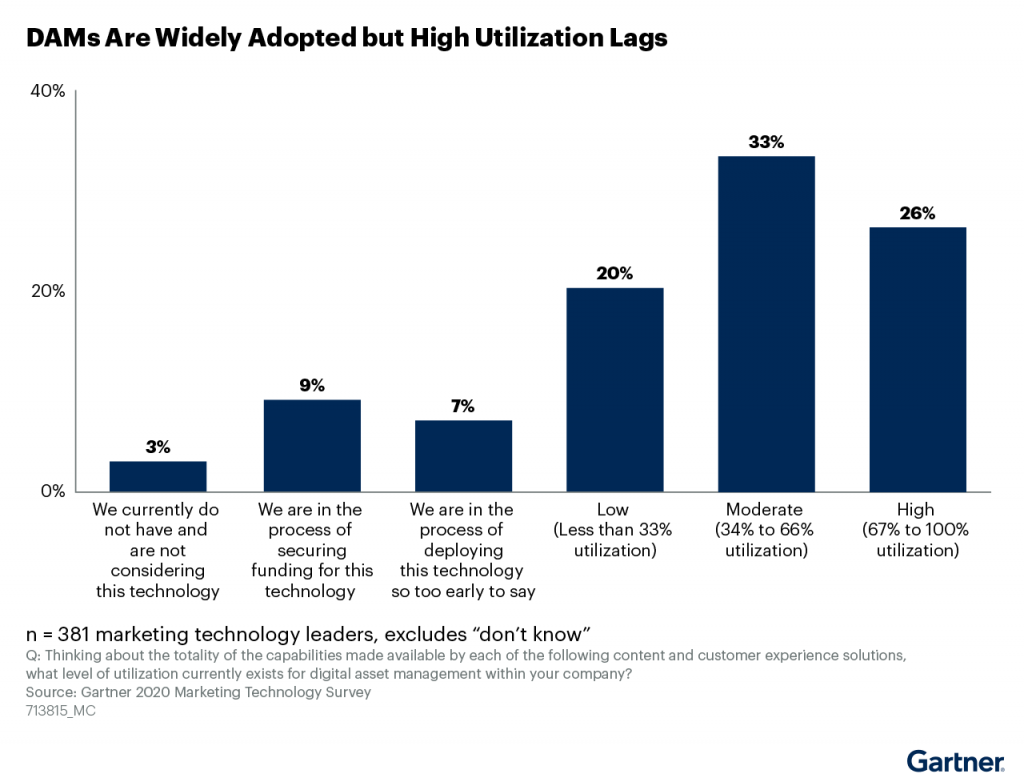 Driving DAM adoption among teams has been a never-ending marathon, as the manual nature of including meta-tags and governance requires constant training. The growing content requirements by multichannel marketers and the need to reuse it have made data-tagging even more important than ever. DAM vendors continue to incorporate effective data taxonomies along with essential cloud AI services such as Azure computer vision, Imagga, Clarifai, and more. There are integrations available with Enterprise Digital Asset Management Software for automated descriptive image tagging which recognizes highlighting colors, smart cropping, objects, facial recognition, audio transcription and scene composition.